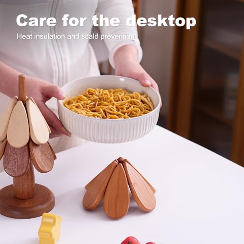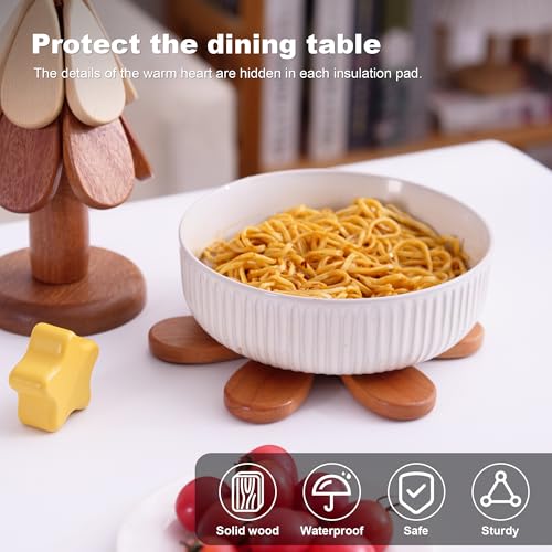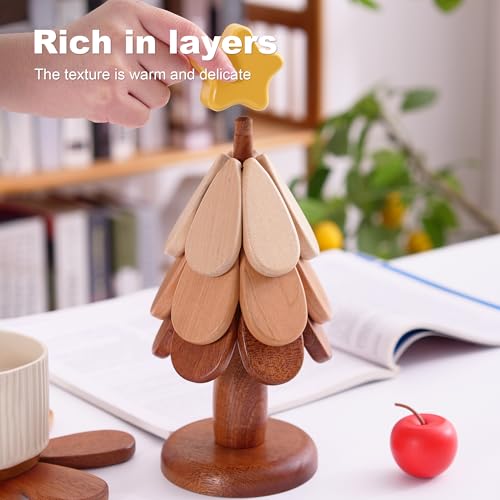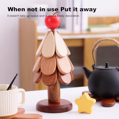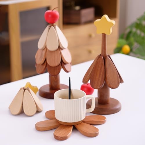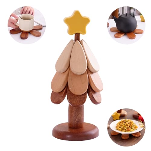 Amazingwood - حوامل أواني خشبية للأطباق الساخنة، مجموعة حوامل أواني على شكل شجرة عيد الميلاد المجيد، 3 حوامل أواني خشبية + 1 حامل، قاعدة أكواب خشبية طبيعية، حوامل أواني قابلة للطي للحلل والطاسات الساخنة، شجرة نجمة