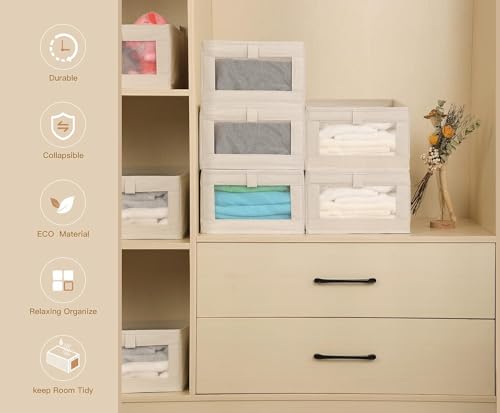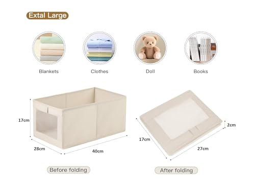 - تصميم نافذة شفافة مريحة: صُممت صناديق التخزين القماشية الخاصة بنا خصيصًا بنوافذ شفافة في الأمام. مما يسمح لك برؤية العناصر الموجودة بالداخل والعثور على أغراضك بسهولة دون إخراج العناصر. توفير الوقت.