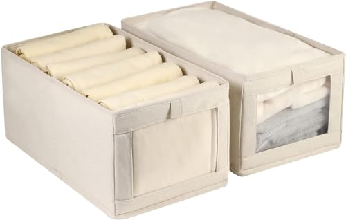 Amazon Brand - Umi - صندوق تخزين قماشي قابل للطي بنافذة شفافة لتنظيم خزانة الملابس والملابس والساري والجينز والمناشف والبطانيات والكتب من امازون براند - قطعتين