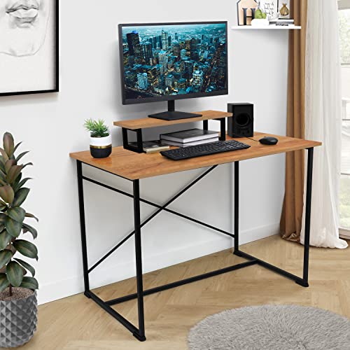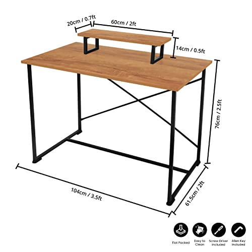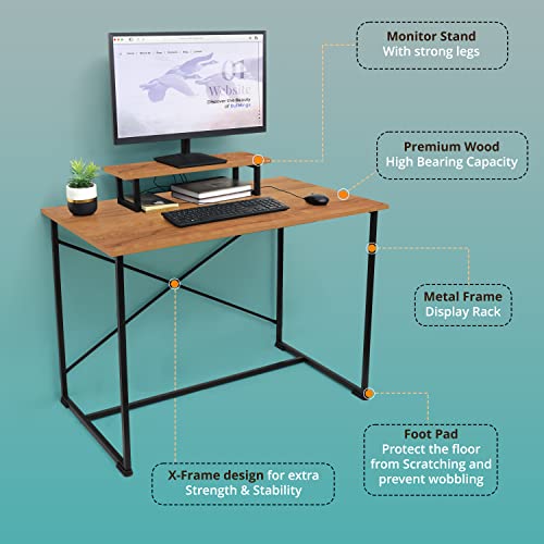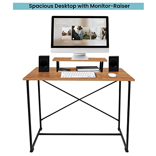Amazon Brand - Umi - طاولة كمبيوتر اومي براند من امازون - مع رافع شاشة 2.5 قدم بتصميم فريد نوعه على شكل حرف X باطار معدني للمنزل والمكتب وطاولة دراسة خشبية حامل تقلل إجهاد العين خشب بني