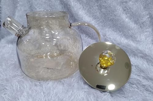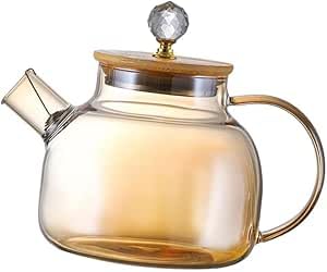 Generic - إبريق شاي من الزجاج الكهرماني مع غطاء خشبي مقاوم للحرارة من الستانلس ستيل قابل للإزالة مع غلاية بوروسيليكات امنة للاستخدام على الموقد، إبريق شاي مع مصفاة (1000 مل)