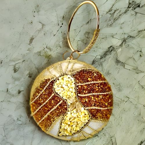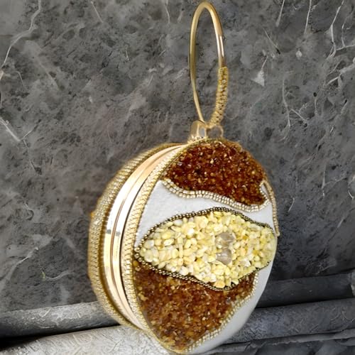 Generic - شنطة يد صغيرة للنساء مصنوعة يدويا من العقيق الاصفر والكهرماني، أبيض