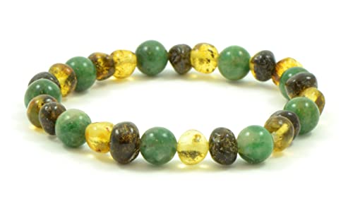 Amberjewelry - سوار للبالغين من الكهرمان مع خرز اليشم الافريقي (7 بوصة، بلون اخضر، موديل 0053)