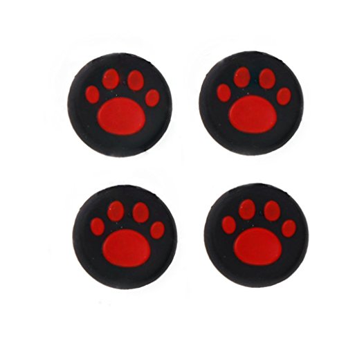 Ambertown - جراب انالوج لعصا التحكم وازرار الابهام من السيليكون لاجهزة بلاي ستيشن 2 و3 و4 وXbox one و360 - اجهزة التحكم بالالعاب (4 × لون احمر- بتصميم مخالب القطط والكلاب)