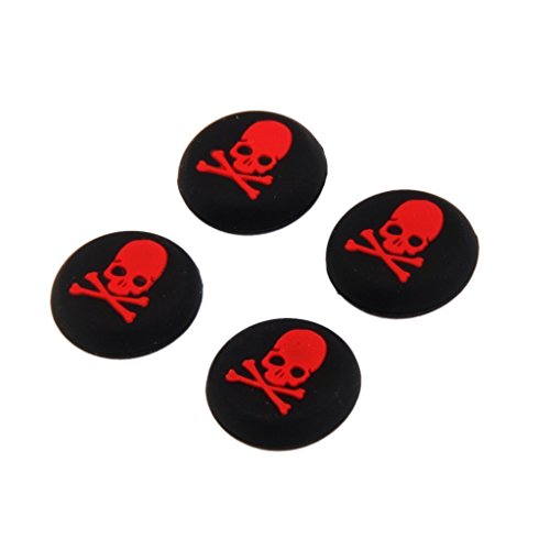 Ambertown - غطاء مقبض الإبهام لذراع التحكم من السيليكون بتصميم جمجمة لأذرع تحكم الألعاب بلاي ستيشن 2 و3 و4 واكس بوكس وان و360 من 4 قطع أحمر