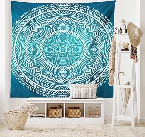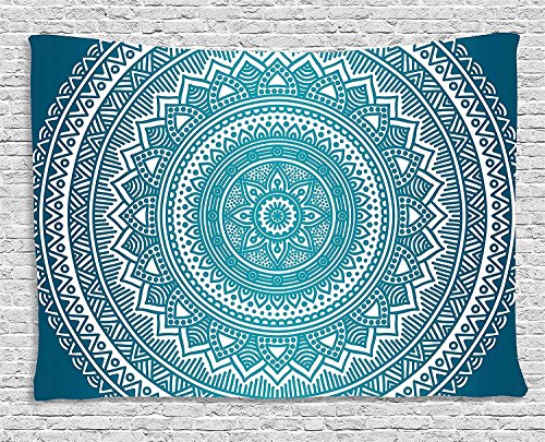 ambesonne - ماندالا مزخرفة للحائط بتصميم فلكور مستوحى من اسيا الشرقية شكل ميدالية دائرية مزينة بالزهور للتعليق على الحائط في غرفة النوم والمعيشة وسكن الطلاب امبيسون - تركواز غامق بلون متدرج اومبري 60×40 بوصة
