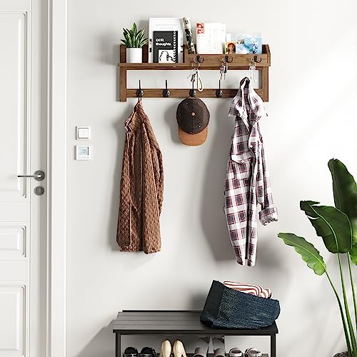 AMBIRD - خطافات حائط مع رف مقاس 65 سم من ايه ام بيرد خشبي للتعليق على الحائط للمعاطف 5 مزدوجة و3 مفاتيح ومنظم بريد وحامل 66.0 رطل 66.0