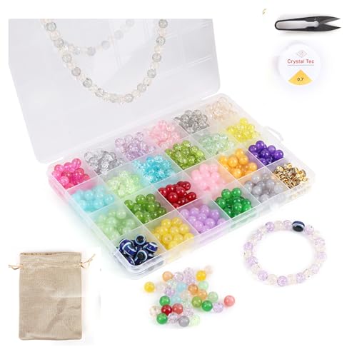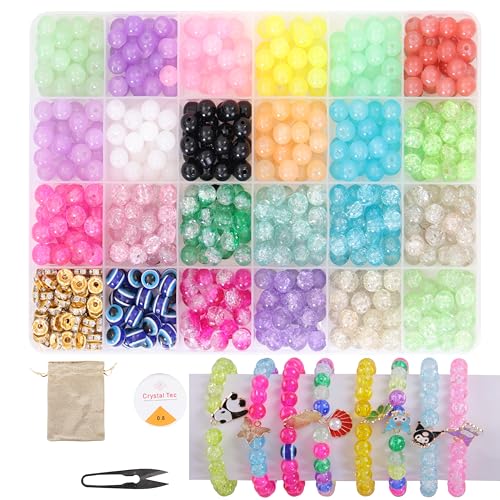 ambitieux - مجموعة صنع أساور ذاتية مع أكثر من 350 خرزة زجاجية بـ 24 لونًا وخيط مطاطي بطول 10 متر وشنطة من الجوت وقطاعة للبنات في أعياد الميلاد من امبيتيوكس، متعددة الألوان