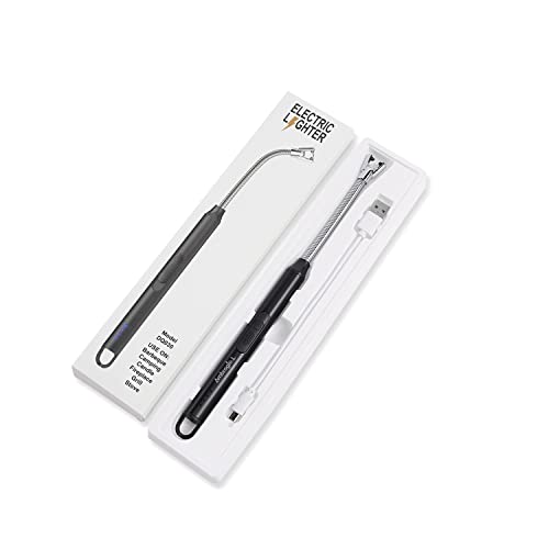 Ambrogio.L - ولاعة كهربائية مرنة على شكل قوس مع شاشة LED للبطارية بطول 10 سم، ولاعة شواء للمطبخ مقاومة للرياح مع مفتاح امان قابلة لاعادة الشحن بمنفذ USB