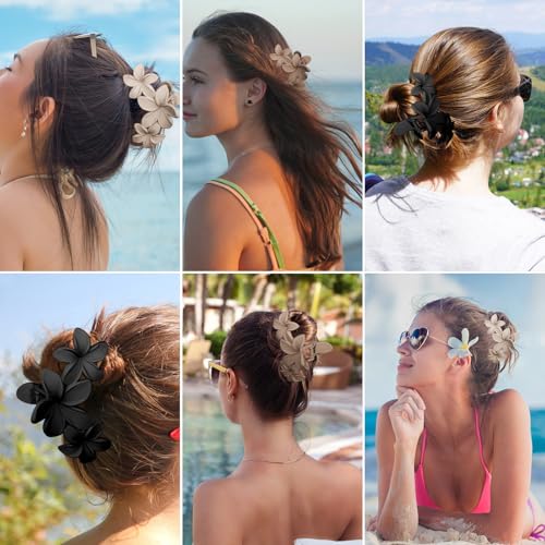 AMCAMI - مشبك شعر مخلبي على شكل زهرة هاواي للشعر الكثيف والخفيف، إكسسوارات شاطئ للنساء من امكامي، مجموعة من 6 قطع