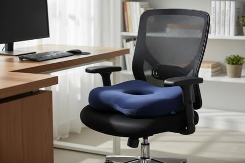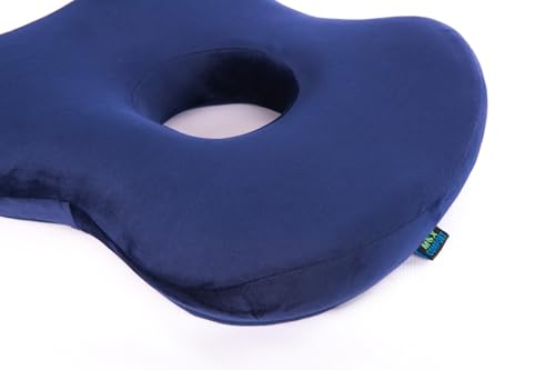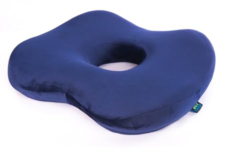 Max Comfort - مقعد طبي ألفا ميموري فوم أمريكي – لتقليل الضغط والوقاية من آلام البواسير والشقوق والعصعص – تصميم مريح للاستخدام في المكتب والسيارة – لون أزرق ملكي