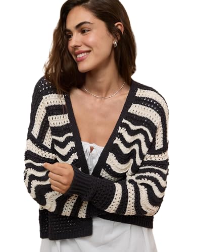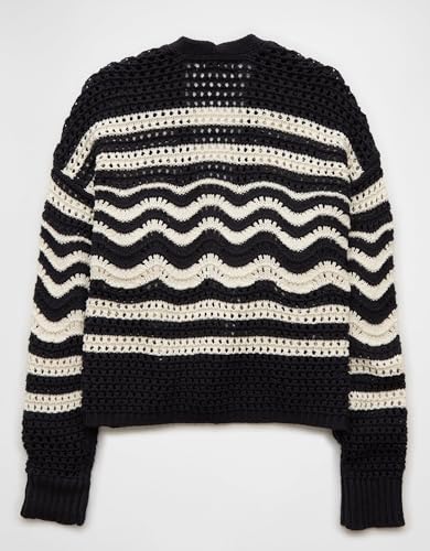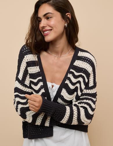 American Eagle - كارديجان من أميريكان إيجل للنساء، تصميم عادي مصنوع من القطن والأكريليك، نمط مخطط