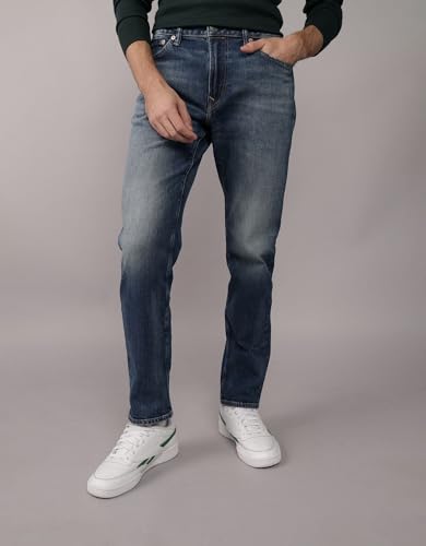 American Eagle - بنطلون جينز إير فليكس + بقصة ضيقة للرجال من أمريكان إيجل، خصر 32 × 32 طول، أزرق نيلي باهت، 35114649_Amec936