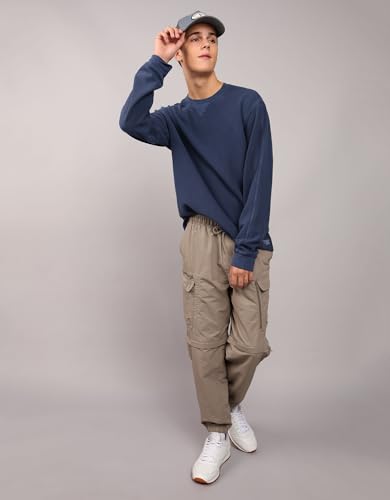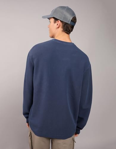 American Eagle - تيشرت حراري بأكمام طويلة ورقبة دائرية ضيقة بتصميم مغسول للرجال من امريكان ايجل