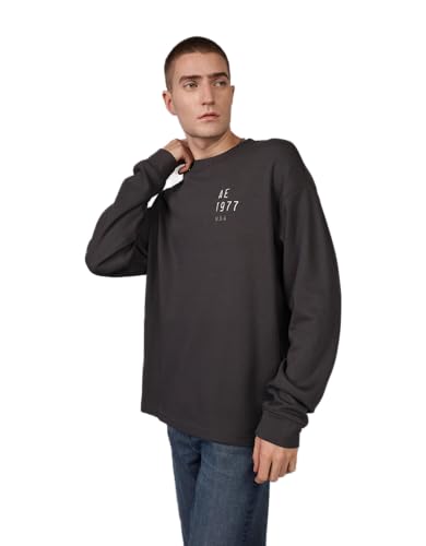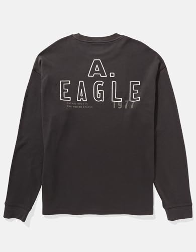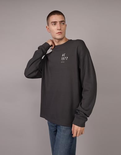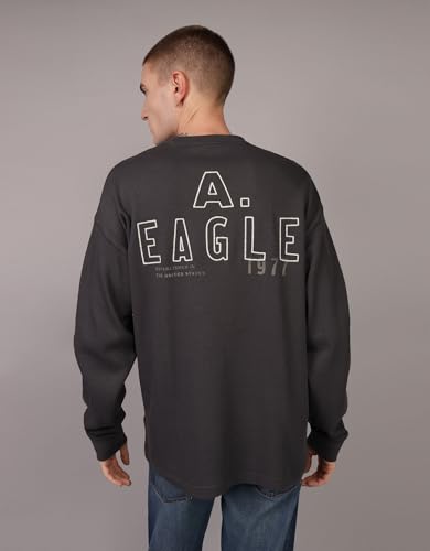 American Eagle - تيشرت حراري بقصة أوفر سايز للرجال بأكمام طويلة ولوجو بارز لشعار العلامة التجارية من امريكان ايجل