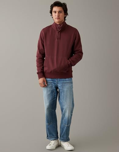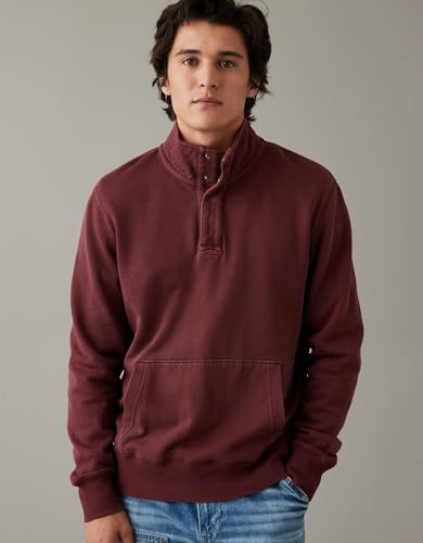 American Eagle - سويت شيرت برقبة دائرية مرتفعة وكباسين لربع الصدر للرجال من اميريكان ايجل