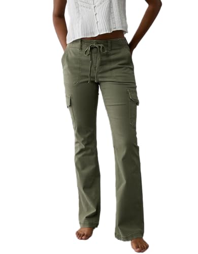 American Eagle - اميريكان ايغل بنطلون كارجو كلاسيكي قابل للتمدد بقصة بوت للنساء 335224702_Amec309، مقاس US 12، لون زيتوني