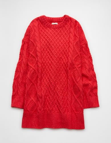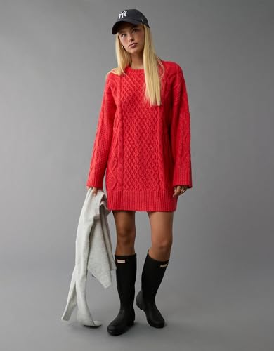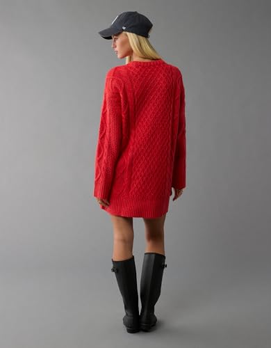 American Eagle - اميريكان ايغل فستان سويتر قصير محبوك بنمط ضفيرة واكمام طويلة للنساء