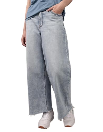 American Eagle - بنطلون جينز مرن وممزق للنساء فضفاض بأرجل واسعة وخصر مرتفع للغاية من اميريكان ايجل