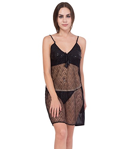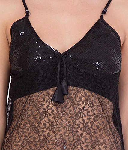 American-Elm - قميص نوم شبكي بدون اكمام للنساء من امريكان ايلم، اسود (مقاس واحد), أسود, One Size
