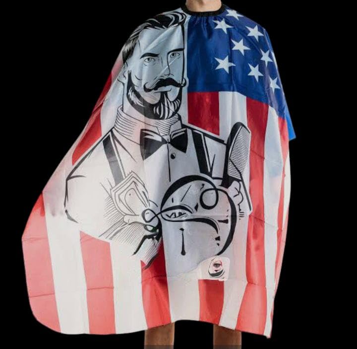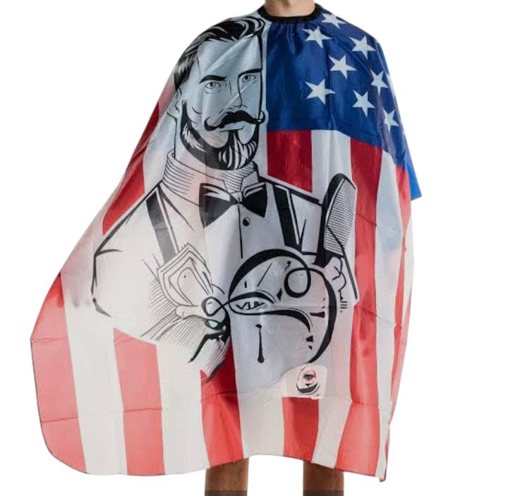 Generic - رداء حلاقة مهني بتصميم العلم الأمريكي، مقاوم للماء، أبيض وأزرق وأحمر، مقاس موحد