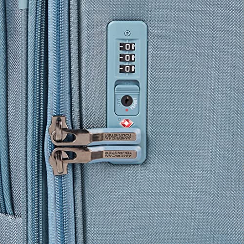 American Tourister - حقيبة سفر من أمريكان تورستر، لون أزرق، مصنوعة من البوليستر، التير 80 سك، مزودة بقفل TSA وسحاب أمان مع نظام تعبئة ذكي ومقاومة للماء