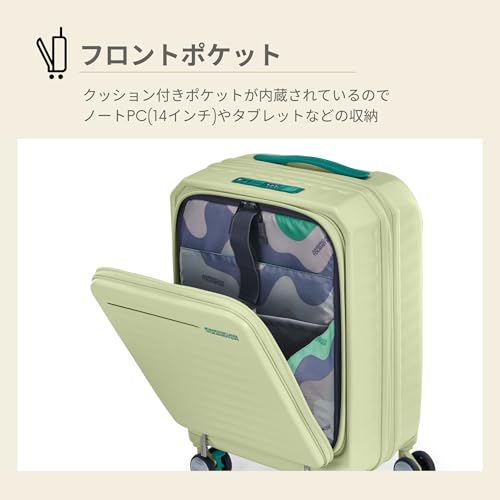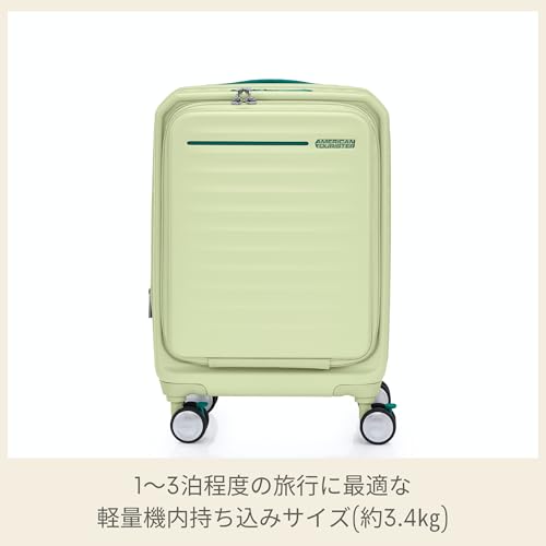 American Tourister - حقيبة سفر من أميريكان تورستر، لون ماتشا أخضر، مصنوعة من البولي كربونات، قطعة واحدة، مع نظام تعليق متعدد وعجلات ممتصة للصدمات وسحاب أمان