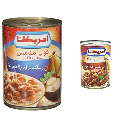 Americana - فول مدمس 400 جرام من امريكانا، حزمة 2 (طعم أصلي - فول مدمس إسكندراني مع طحينة - مقشر بنكهة الفلفل الحار)