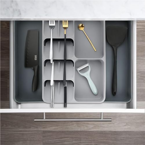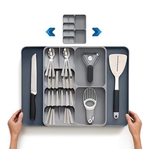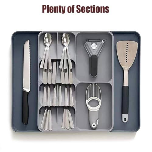 AMERTEER - صينية درج لتنظيم أدوات تناول الطعام من اماتير | منظم درج أدوات تناول الطعام قابل للتوسيع | منظم أدوات كبيرة لدرج المطبخ | منظمات أدراج المطبخ متعددة الأغراض لتخزين أدوات تناول الطعام الكبيرة