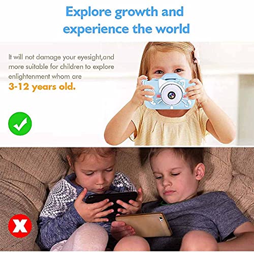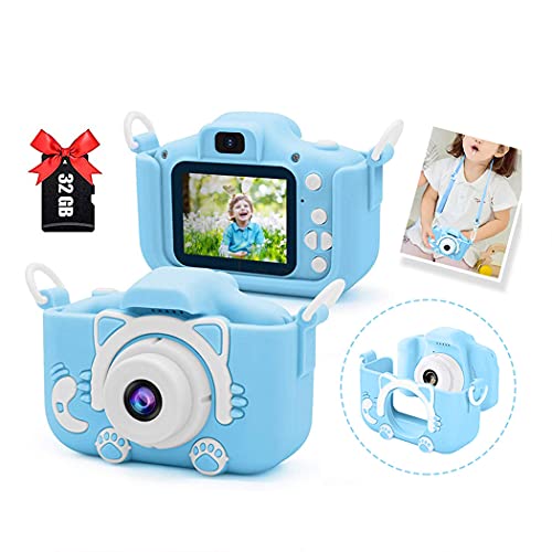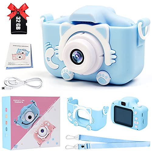 AMERTEER - كاميرا أطفال للأطفال بعمر 3 4 5 6 7 8 سنوات من اماتير، كاميرات فيديو رقمية عالية الدقة HD، كاميرا سيلفي للأطفال، هدايا عيد ميلاد للبنات والأولاد بعمر من 3 إلى 12 سنة - بطاقة SD 32GB متضمنة (أزرق)