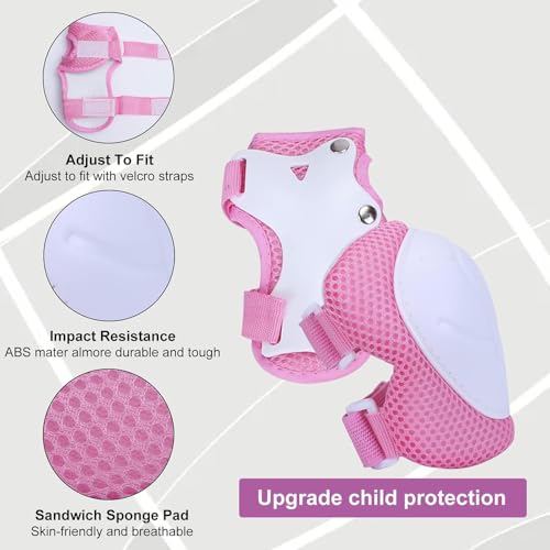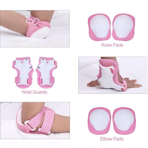 - 【مجموعة حماية 7 في 1】 طقم خوذة ووسادات للأطفال يتضمن خوذة واحدة للأطفال الصغار، وواقيين للركبة، وواقيين للمرفقين، وواقيين للمعصمين. يسهل حمل طقم الحماية مع الأطفال لأي أنشطة خارجية أخرى.