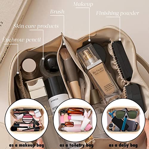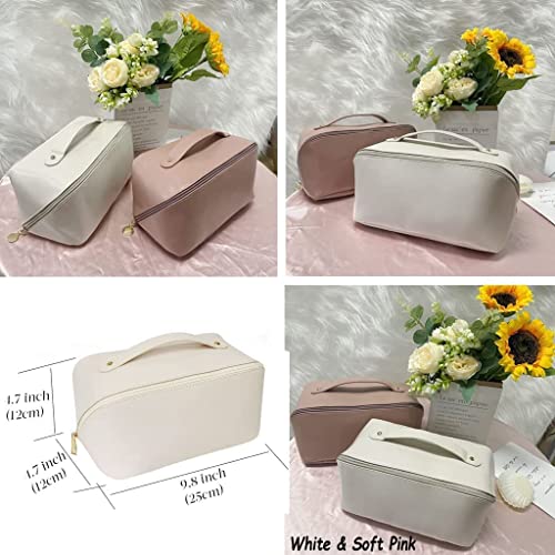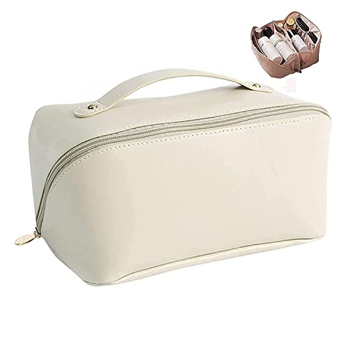 AMERTEER - اماتير شنطة مستحضرات تجميل للسفر بسعة كبيرة مكياج متعددة الوظائف من جلد البولي يوريثين مع مقبض ومقسم شنط للنساء لون ابيض ادوات الزينة اميرتير