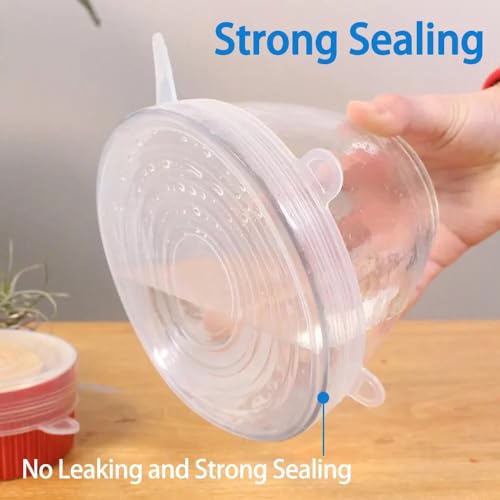 - سهلة الاستخدام والتنظيف - هذه الأغطية المصنوعة من السيليكون المرن سهلة الاستخدام. يسهل تمديدها لوضعها على الجزء العلوي من البولة وتغطيتها بإحكام بفضل الأشرطة المرنة حول الأغطية. متوافقة مع الأكواب والقوس والبرطمانات والأواني الزجاجية. كما أنها سهلة التنظيف للغاية، ما عليك سوى شطفها أو غسلها في غسالة الأطباق.