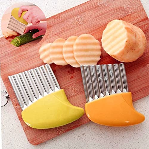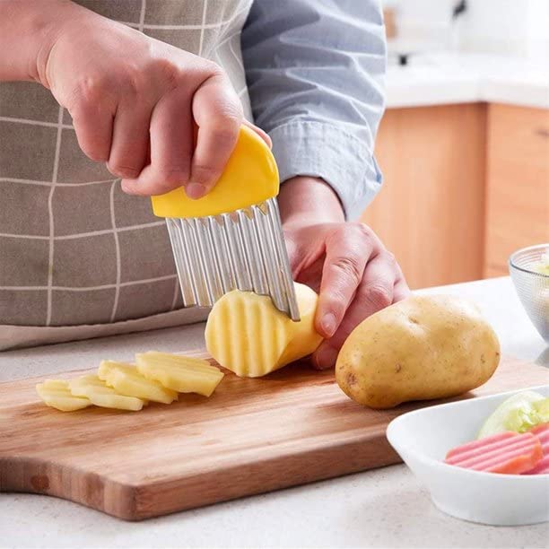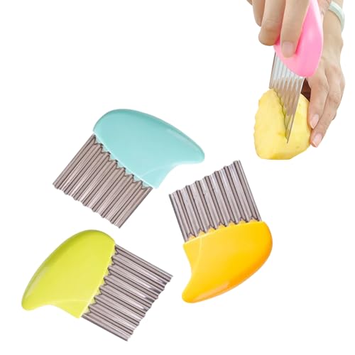AMERTEER - سكين تقطيع اميرتير مموج من 3 قطع، قطاعة مجعدة من الفولاذ المقاوم للصدأ، قطاعة البطاطس المقلية، للخضروات والبطاطس والخيار والجزر