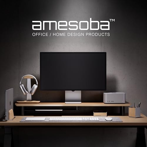 amesoba - رف مكتب خشبي كبير من اميسوبا / حامل شاشة مزدوج / حامل مكتب لرفع شاشة الكمبيوتر / حامل شاشة خشبي للمكتب 2 شاشة (بلوط ابيض)