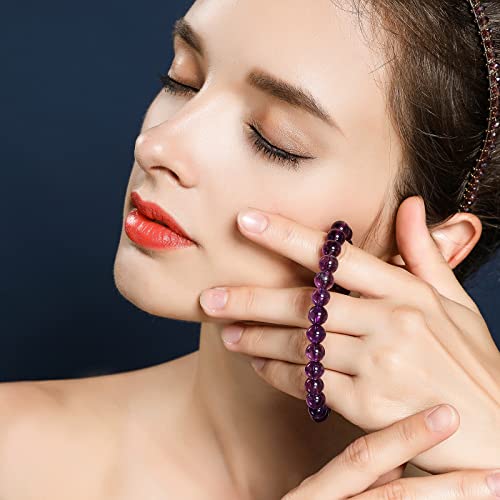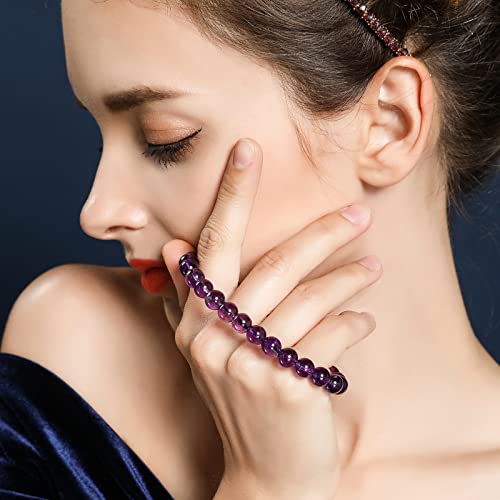 generic - سوار كريستال ارجواني للنساء من اميثيست 7-8 ملم، مجوهرات للبنات 6.8 انش، هدايا الكريسماس