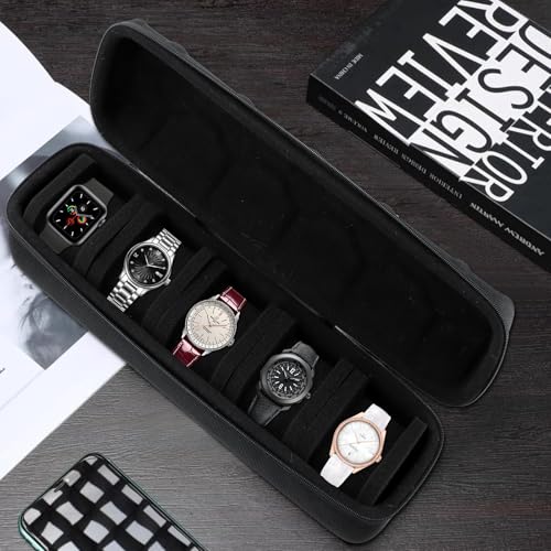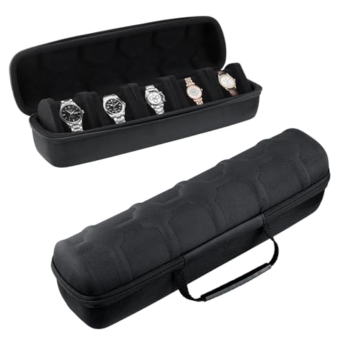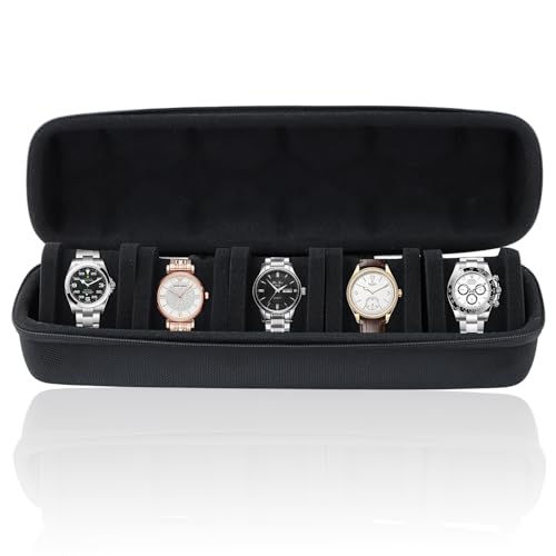 Amexo - حافظة ساعة سفر قابلة للطي مكونة من 5 أقسام من اميكسو، حافظة صلبة مع منظم ساعات مناسب للسفر للرجال والنساء مع وسادة مضادة للحركة