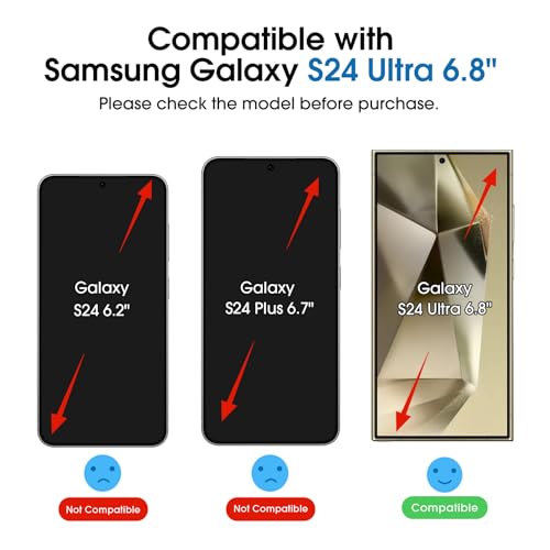 - 【عبوة 2 + 2】 تتضمن العبوة 2 × شاشة حماية لموبايل سامسونج جالاكسي S24 الترا 6.8 بوصة و2 × واقي عدسة كاميرا، مع مجموعتين من أدوات المحاذاة التلقائية (تأتي شاشة الحماية مثبتة مسبقًا في أداة المحاذاة التلقائية) وكل ما تحتاجه للتركيب