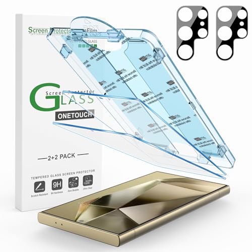 amFilm - am فيلم [2+2 قطعة] واقي شاشة من الزجاج المقوى ون تاتش لهاتف سامسونج جالاكسي S24 الترا 6.8 انش مع عدسة الكاميرا، صلابة 9، سهل التركيب، خالي الفقاعات ومناسب للجراب.، شفاف