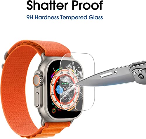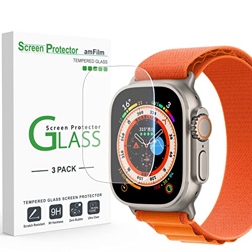 amFilm - am فيلم واقي شاشة زجاجي لساعة ابل الترا 49 ملم زجاج مقسى تغطية كاملة من الحافة الى سهل التركيب خالي الفقاعات - شفاف 3 قطع