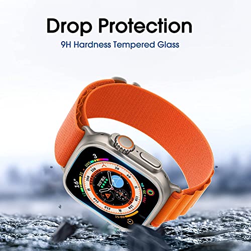 - درجة صلابة 9: شاشة حماية زجاجية متينة للغاية ومقاومة للخدش - صلابة السطح 9H. يوفر الزجاج المقوى مقاومة للخدش وحماية من السقوط لساعة ابل الترا الخاصة بك.