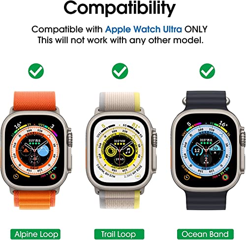 - واقي الشاشة متوافق مع ساعة ابل الترا: مصمم خصيصًا فقط لطراز ساعة ابل الترا مقاس 49 ملم. غير متوافق مع أي موديلات ساعات أخرى.