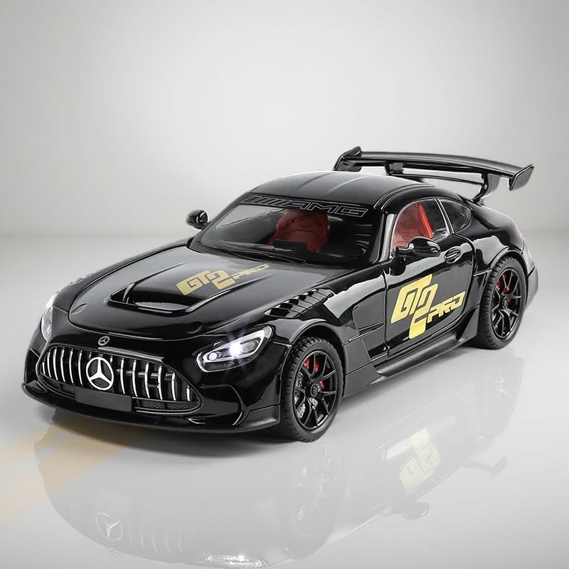 - تصميم واقعي بدقة عالية: مجسم سيارة مرسيدس AMG GT بمقياس 1:24، مصمم بعناية ليعكس كل تفاصيل السيارة الأصلية بدقة فائقة.