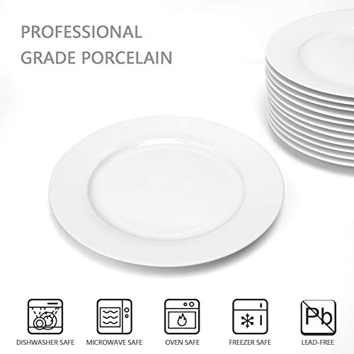 amhomel - مجموعة أطباق عشاء من البورسلين الأبيض دائرية للحلوى أو السلطة أدوات مائدة مقاومة للخدش وخالية الرصاص وآمنة للاستخدام في الميكروويف والفرن وغسالة الأطباق اموميل 12 قطعة 10.5 بوصة