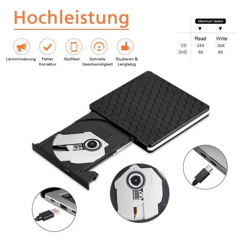 - توافق واسع: يضيف قارئ ومسجل CD-ROM/DVD-RM محولًا من النوع C يمكنه دعم الأجهزة المختلفة. متوافق مع ويندوز 2000/2003/ اكس بي/ 7/8/10، فيستا وجميع إصدارات أنظمة ماك او اس، ابل ماك بوك اير وماك بوك برو. بالإضافة إلى ذلك، يمكن لمحرك الموقد والشعلة هذا القراءة والتسجيل بتنسيقات مختلفة، على سبيل المثال B. CD-R, CD-RW, CD-ROM, DVD-R, DVD-RW, DVD-RAM, DVD-RW.