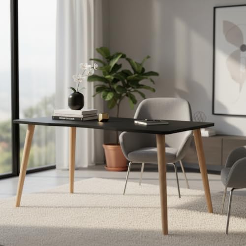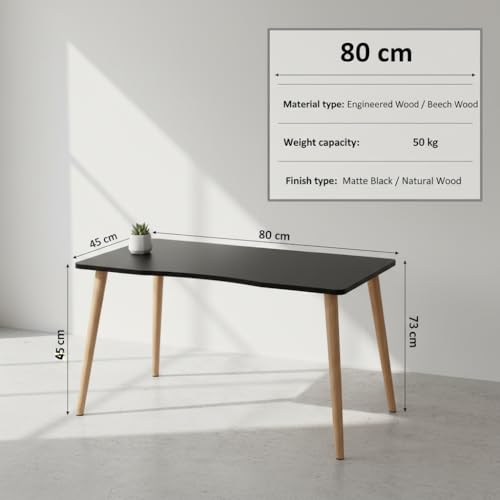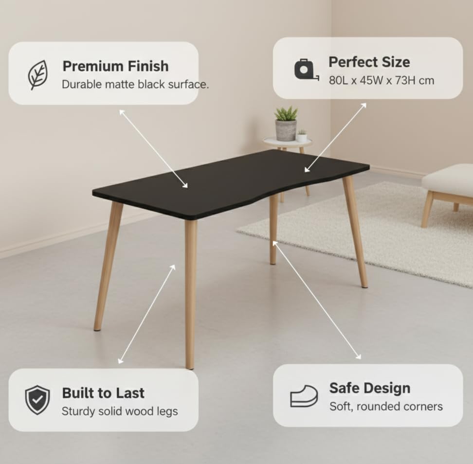 Generic - مكتب كمبيوتر عصري فاخر مع أرجل خشبية صلبة من اميري هوم - مكتب منزلي بسيط ومحطة عمل للألعاب - مكتب ممتاز للكتابة والدراسة لغرفة النوم والمكتب وغرفة المعيشة (أسود، 80× 45)