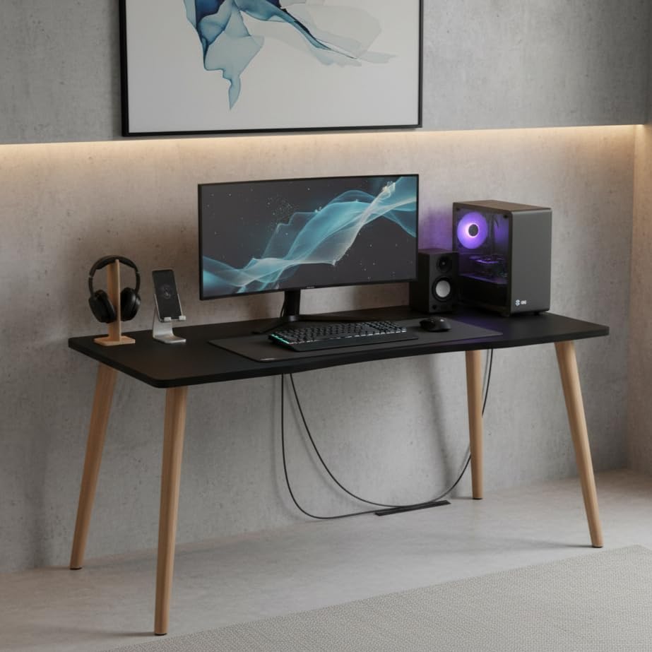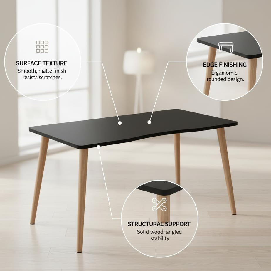 - تصميم قوي ومتین: مصممة بأرجل خشبية صلبة فاخرة وسطح طاولة متين يضمن الثبات والأداء طويل الأمد للاستخدام اليومي كمحطة عمل أو مكتب دراسة