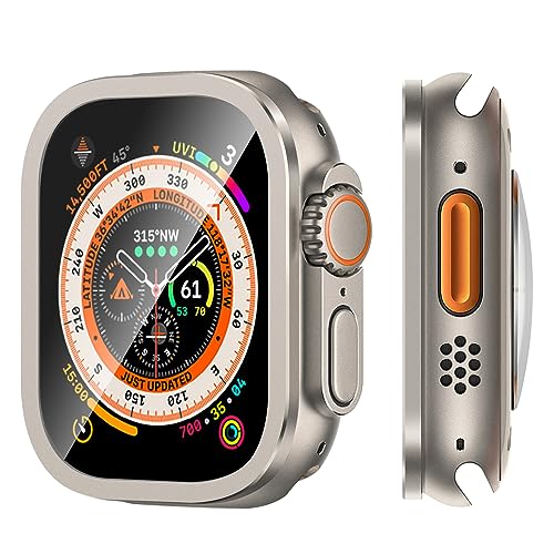 - 【استمتع بالمظهر الأصلي】إطار مصنوع من خليط معدني من التيتانيوم بنفس لون الساعة، حتى تتمكن من الاستمتاع بالجمال الأصلي لساعة آبل ووتش الترا 49 ملم، مع حماية الشاشة من الخدوش والتلف من الأنشطة اليومية.
