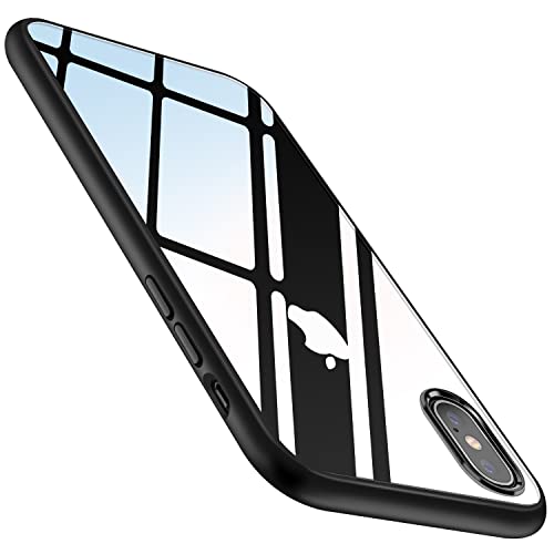 Amizee - جراب حماية خلفي كريستالي شفاف رفيع ومضاد للاصفرار لموبايل ايفون X وXS من اميزي (اسود) بولي يوريثين اللدن بالحرارة كربونات
