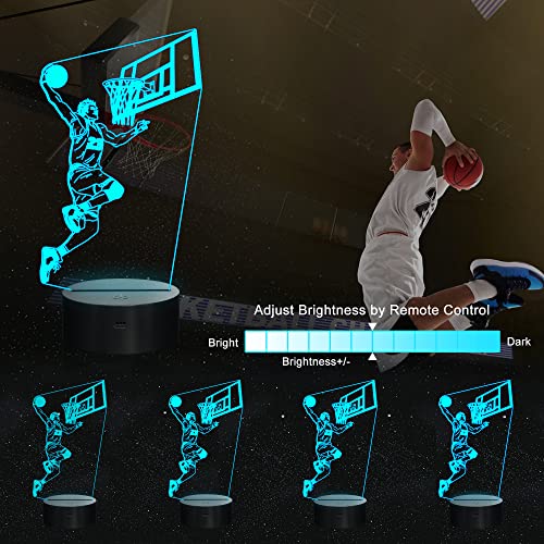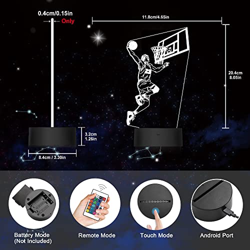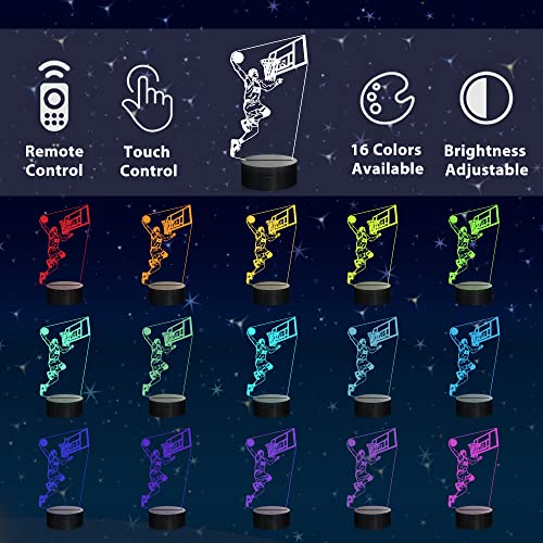 Ammonite - امونايت مصباح ليلي ثلاثي الابعاد للاعب كرة السلة للاطفال LED بجانب السرير 16 لون متغير مع جهاز تحكم عن بعد ووظيفة التوقيت ديكور غرفة نوم الاطفال كهدية عيد ميلاد للاولاد والبنات